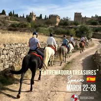 Una furgoneta de apoyo acompaña al grupo durante toda la semana, recogiéndonos por la mañana para las pausas para comer tapas y para el almuerzo, por la noche y también para trasladar el equipaje, de modo que tengamos acceso a él al menos tres veces al día o cuando sea necesario. No es necesario llevar nada a caballo. Disponemos de pequeñas alforjas delante de las sillas de montar para guardar objetos pequeños, como una botella de agua, protector solar, cámara, móvil, etc. El servicio durante las rutas es excepcional.